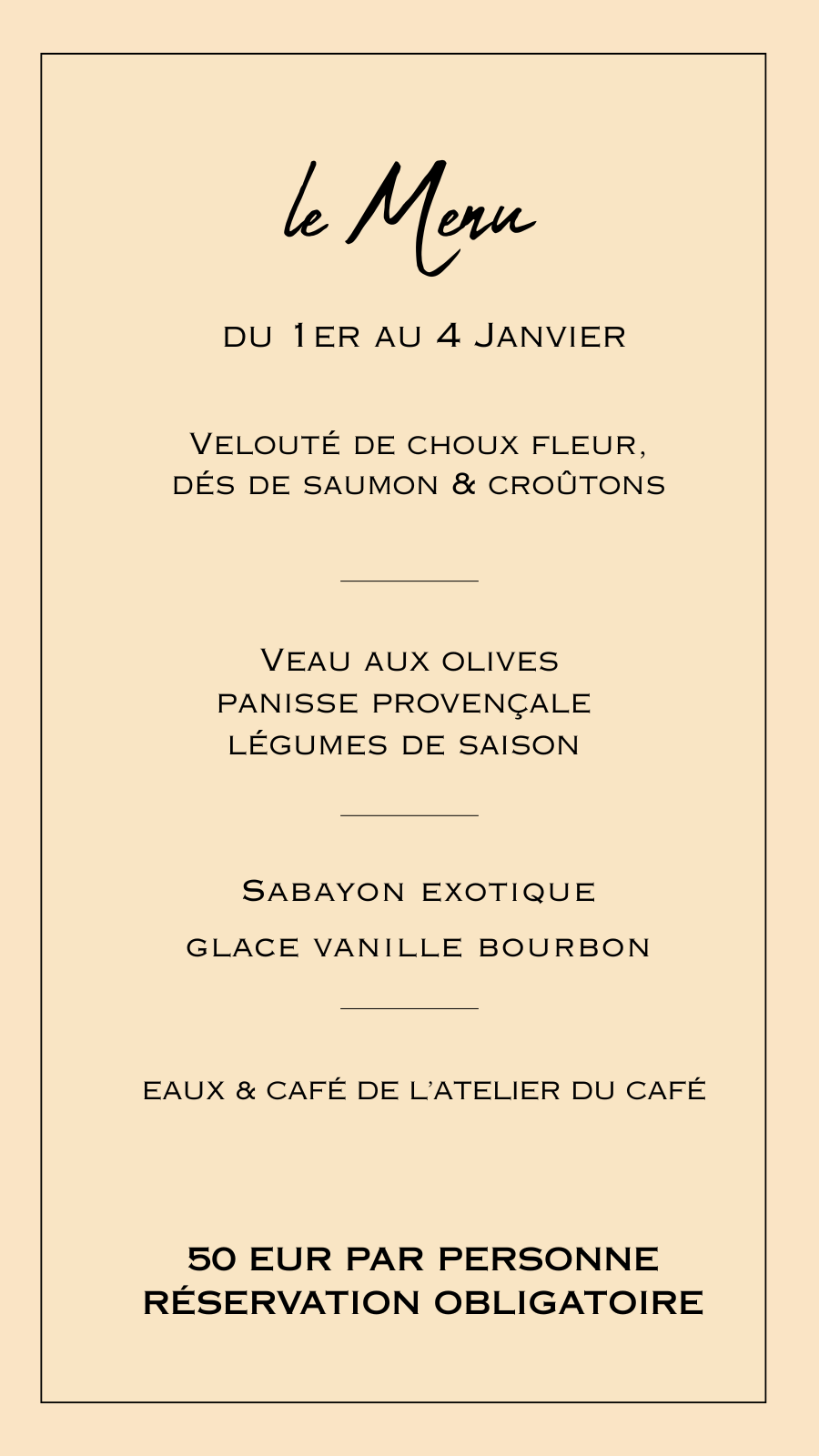 Notre carte avec un menu unique chaque semaine, 1 menu enfant et la possibilité d'une option végétarienne.