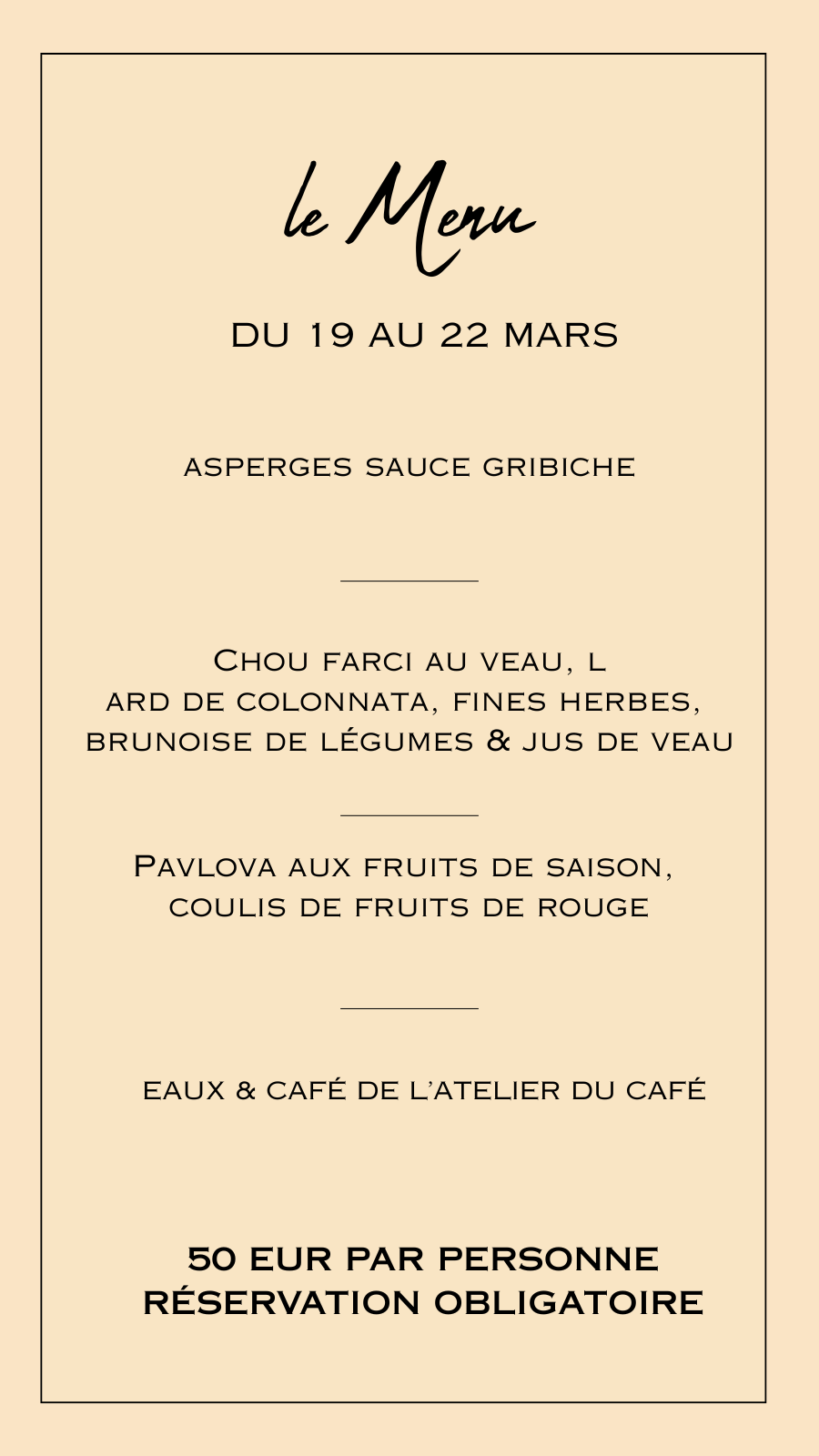 Notre carte évolue avec un menu unique chaque semaine, un menu enfant et la possibilité d'une option végétarienne.
