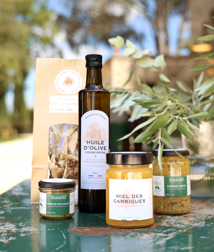 Depuis le printemps nous proposons également notre huile d’olives, notre infusion de tilleul, nos tapenades et autres tartinables... tous produits avec passion au coeur de notre domaine.