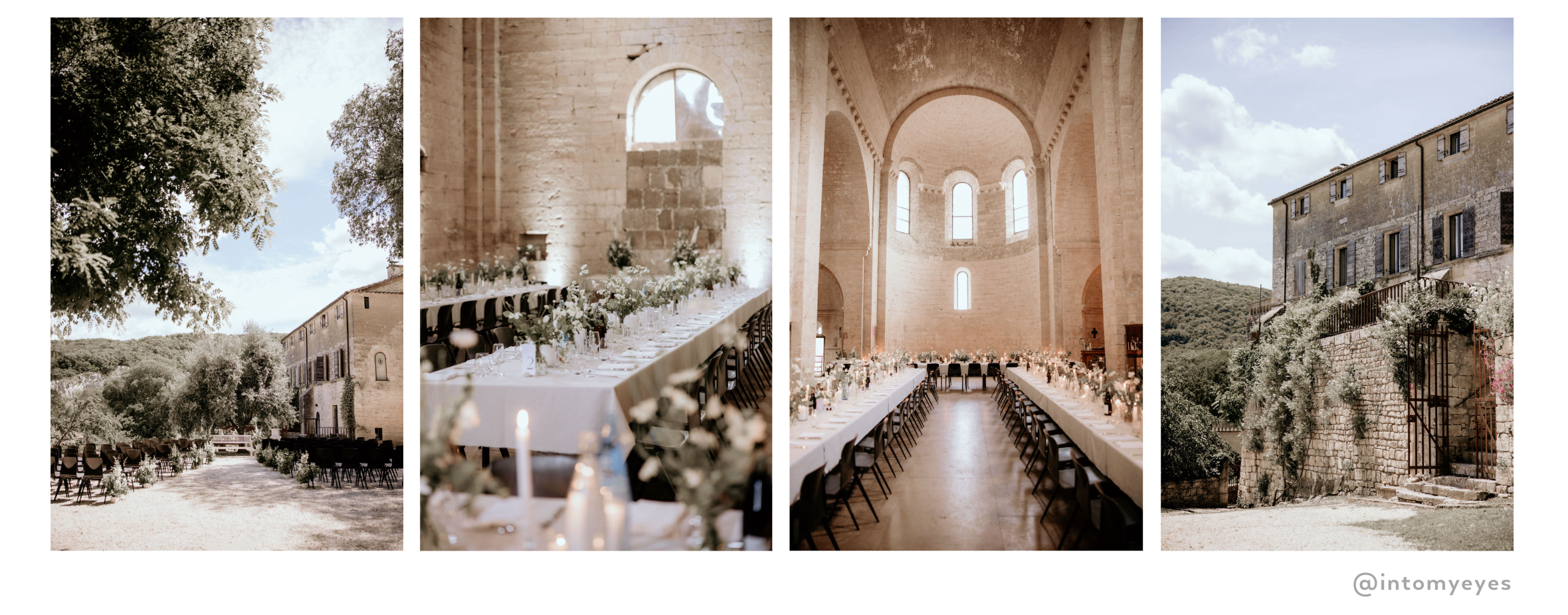Les terrasses, l'agora, le jardin du cloître, la piscine naturelle et même le terrain de pétanque, seront parfaits pour l'apéritif, le vin d'honneur ou même pour une réception champêtre.