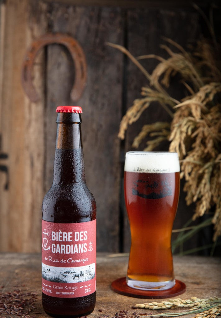 Bière rousse au riz de Camargue IGP rouge, idéale pour les moments festifs et de convivialité, cette flamboyante rousse vous offre la rondeur, la douceur et le caractère unique de son riz de Camargue IGP rouge.