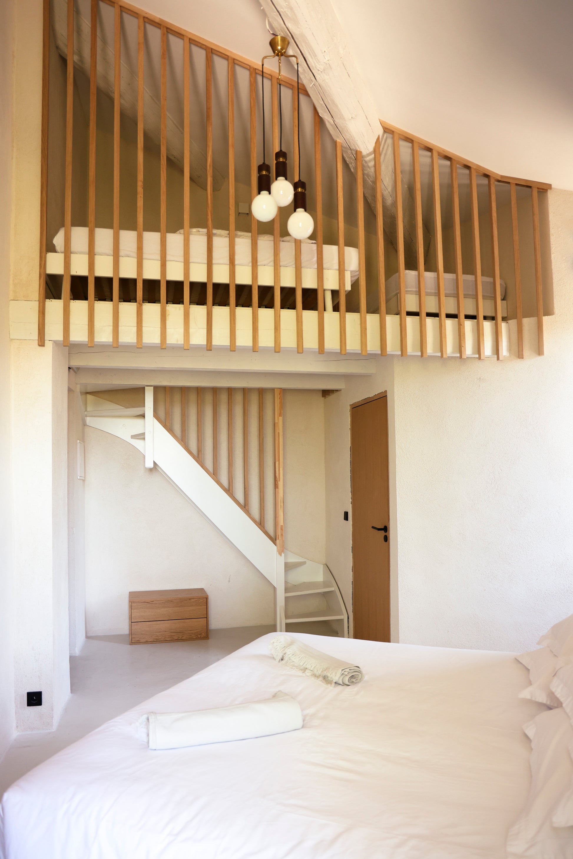 Elle peut accueillir jusqu'à 4 personnes avec une mezzanine permettant d'accueillir 2 enfants dans la même chambre avec une vue sur la rue et la campagne environnante.