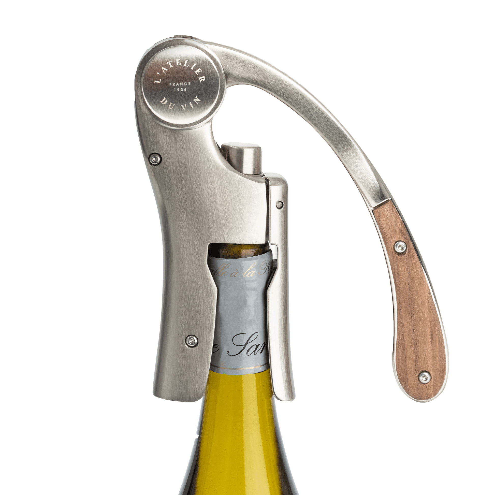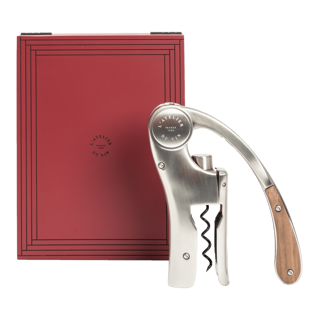 Façonné à la main sur toute sa surface jusqu’à révéler une sublime patine satinée, cet outil du vin intuitif invite à le manipuler, le temps d’un rituel œnologique. La courbe de son levier, couvert de noyer massif, épouse l’ergonomie parfaite de son mécanisme d’ouverture, particulièrement apprécié des œnologues et sommeliers depuis plus de 15 ans. Chaque modèle est unique, de par le motif naturel aléatoire des veines de son bois noble.