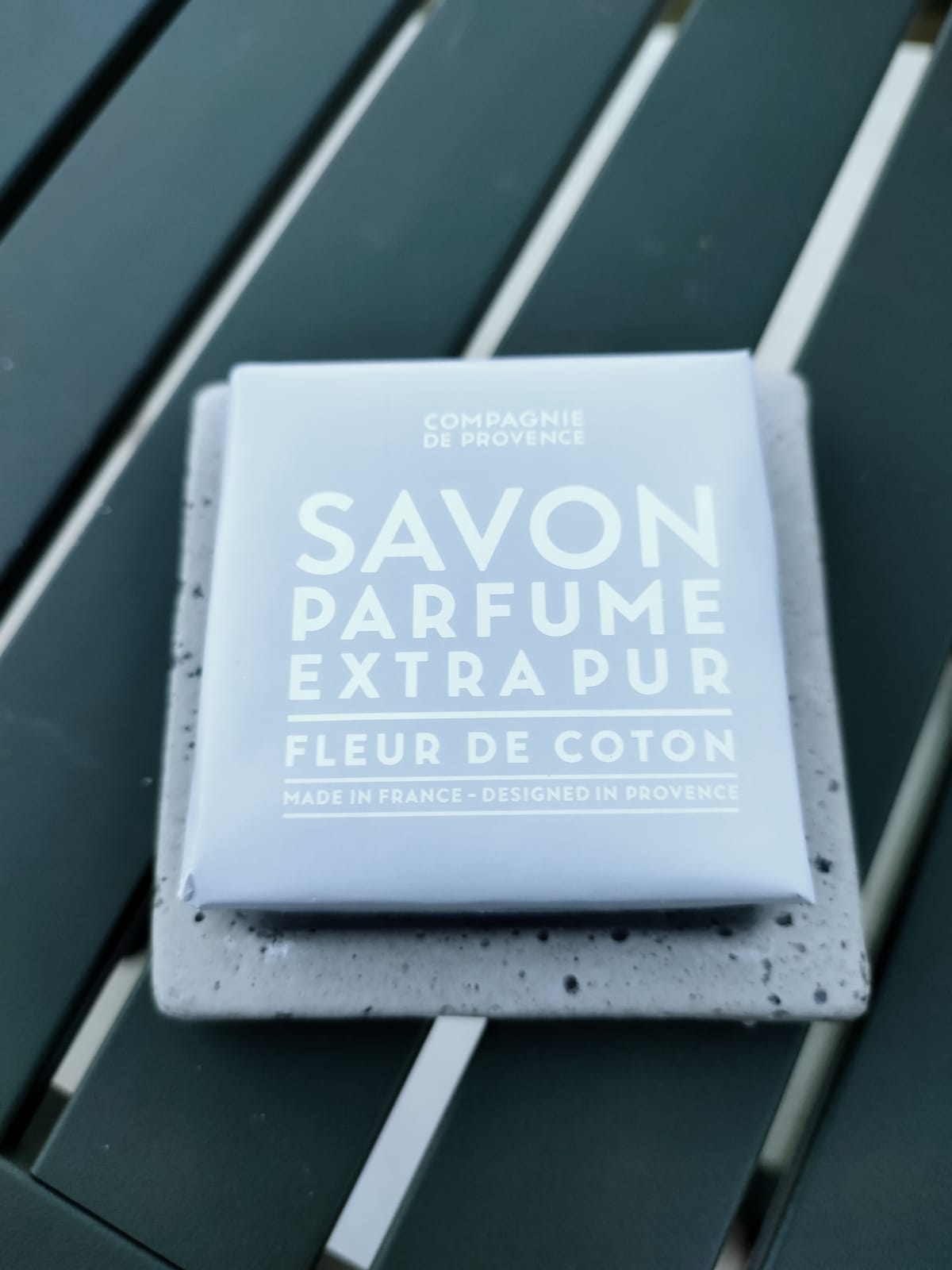 Le savon solide au parfum fleuri, délicat et poudré de Fleur de Coton.