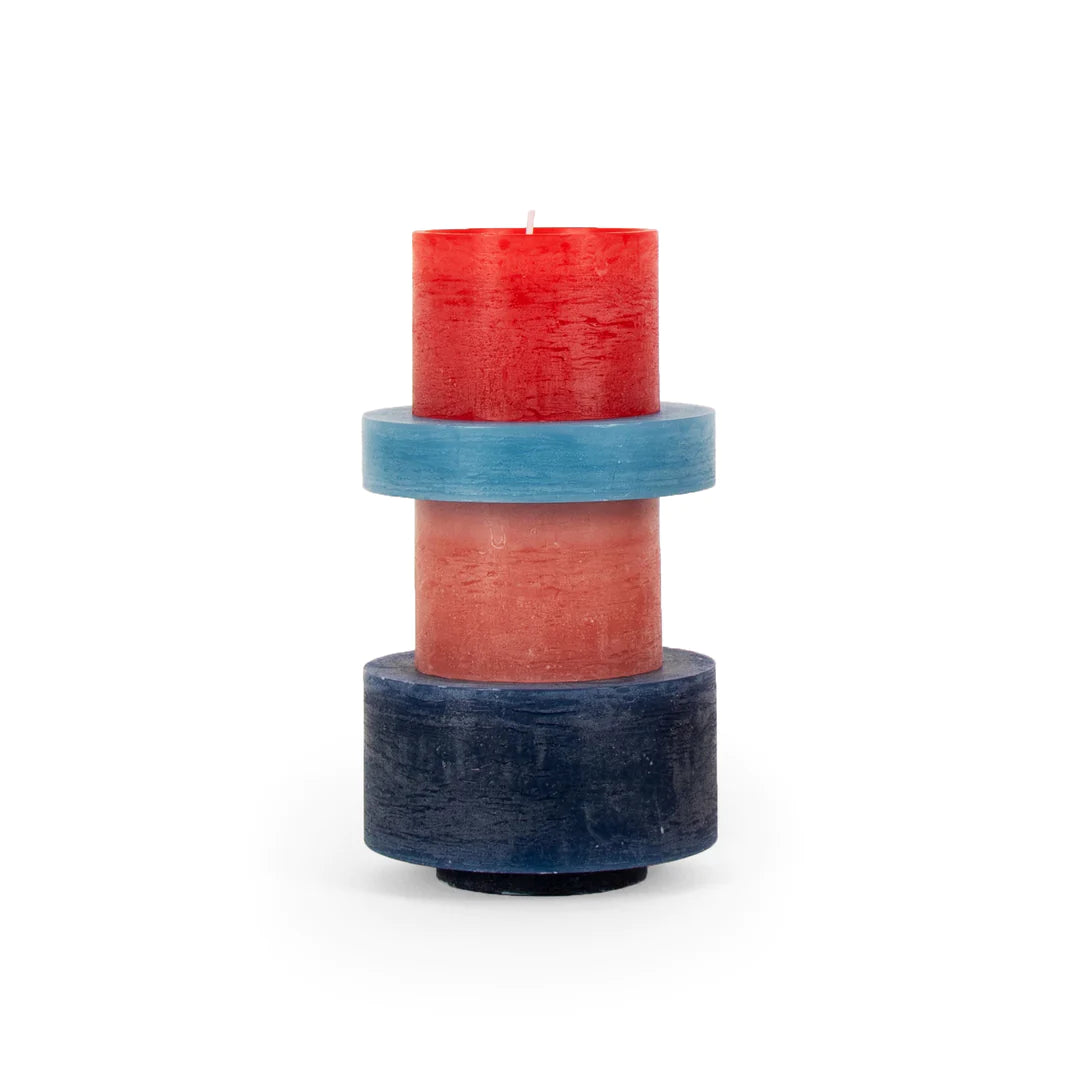 The box contains 1 stack of 3 candles in different dimensions, accompanied by one Candl holder.