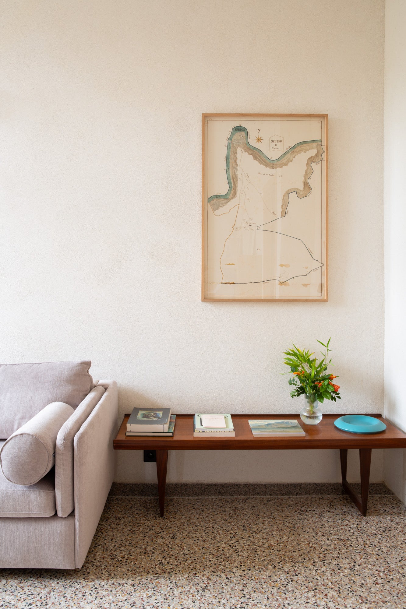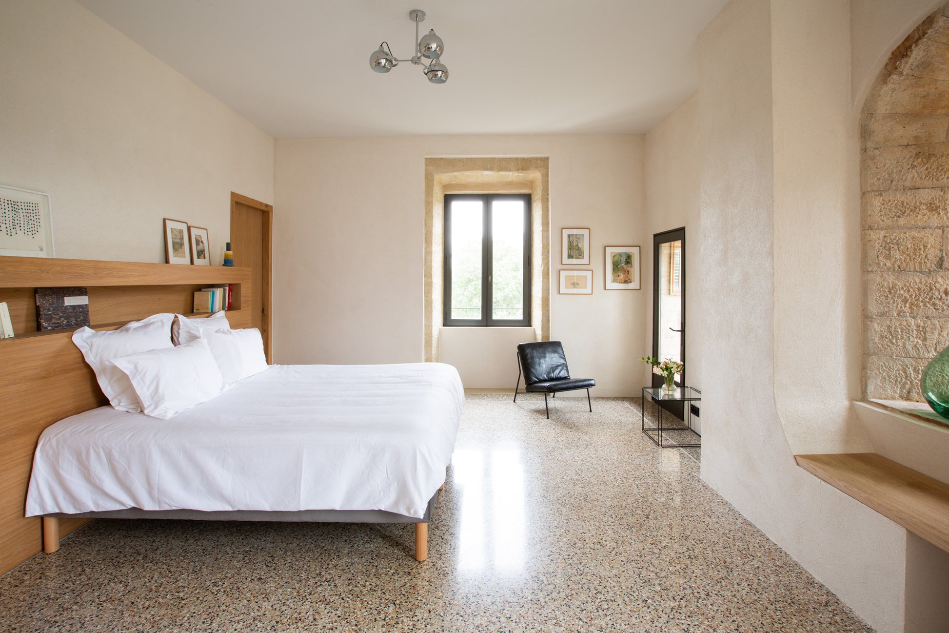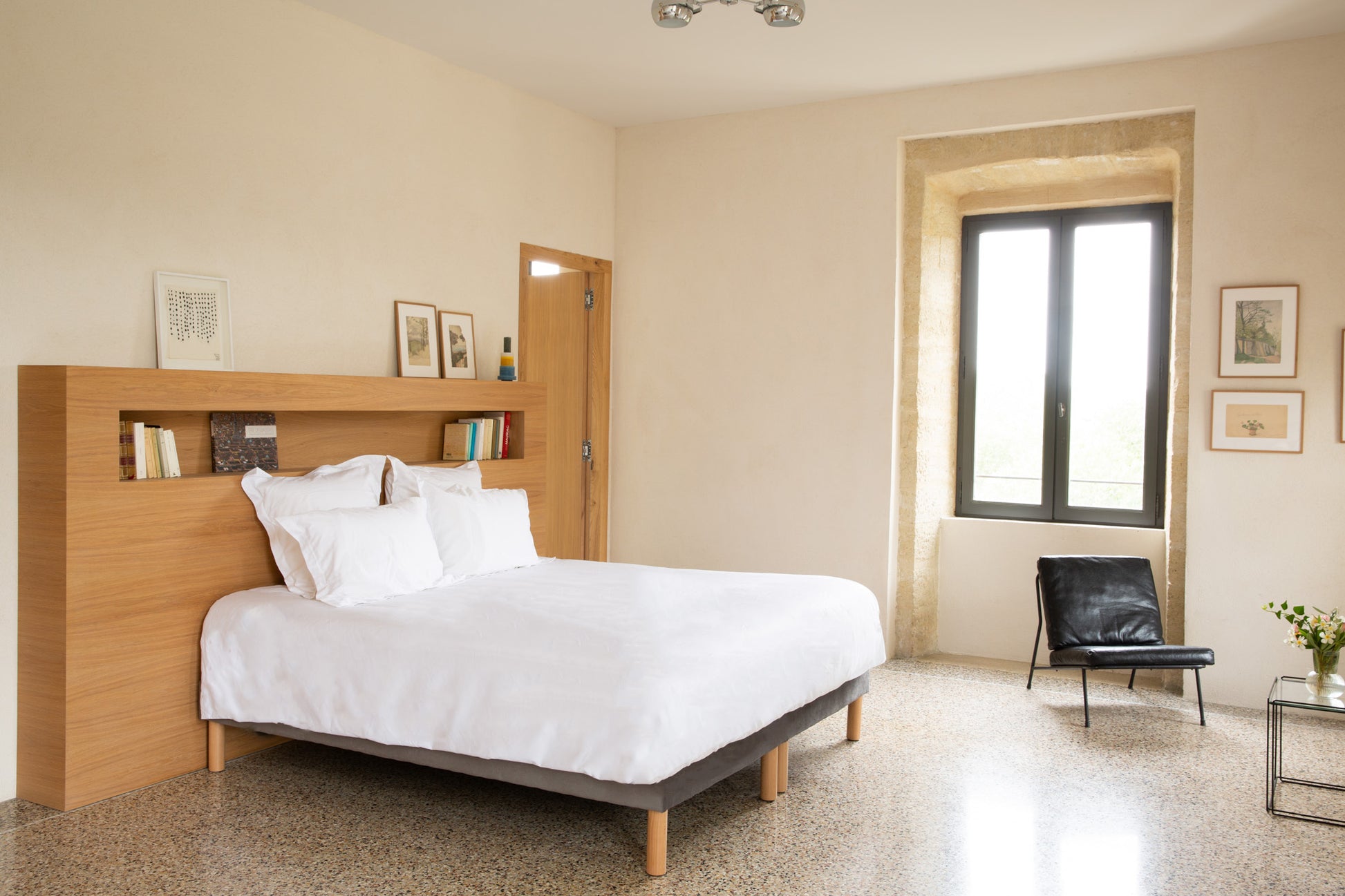 Située au premier étage, cette suite de 42m² bénéficie d'un balcon privatif de 18m² surplombant le Pont Saint-Nicolas et le Gardon. Son intérieur baigné de teintes douces fait la part belle à des matériaux nobles et épurés.