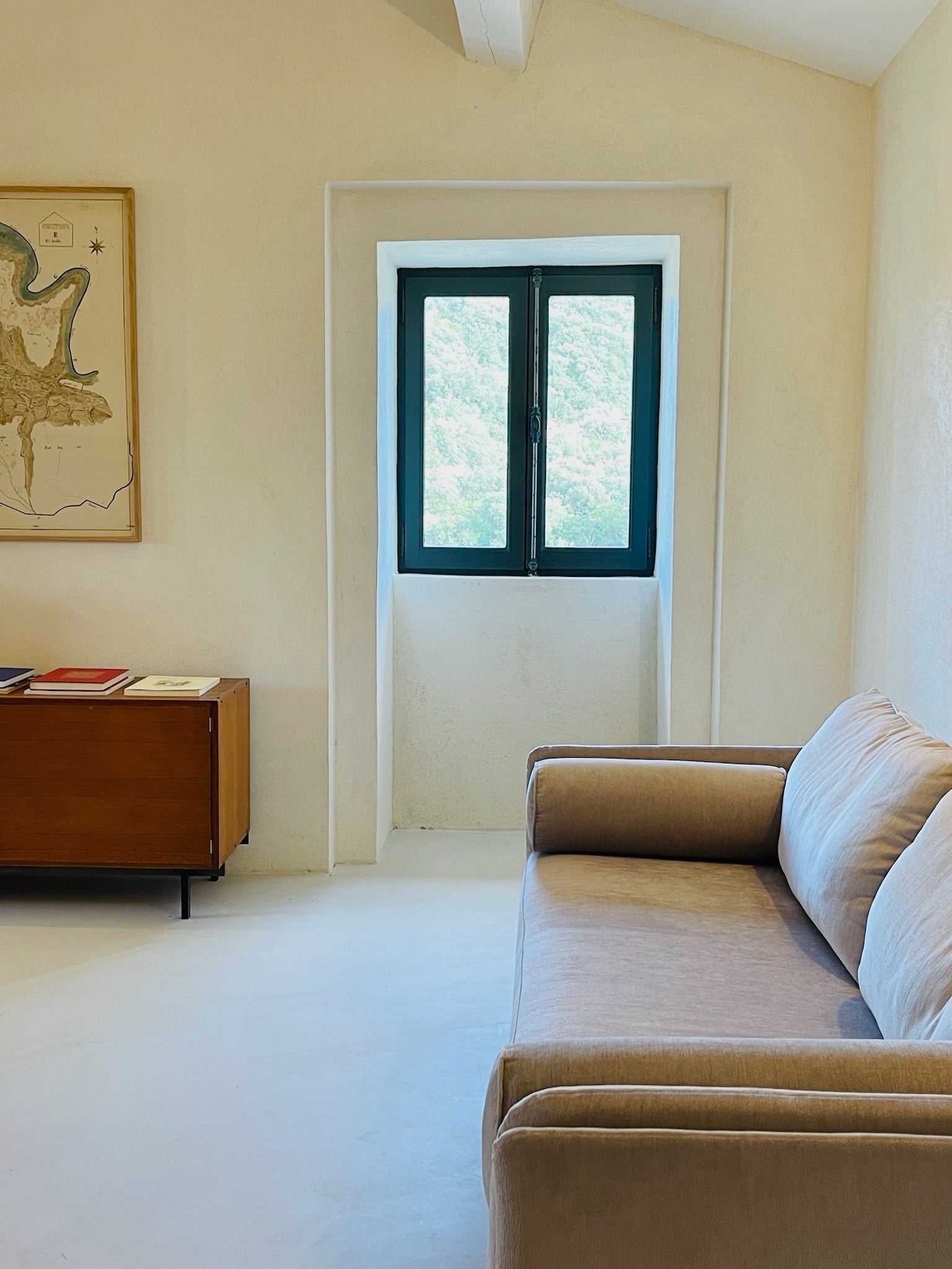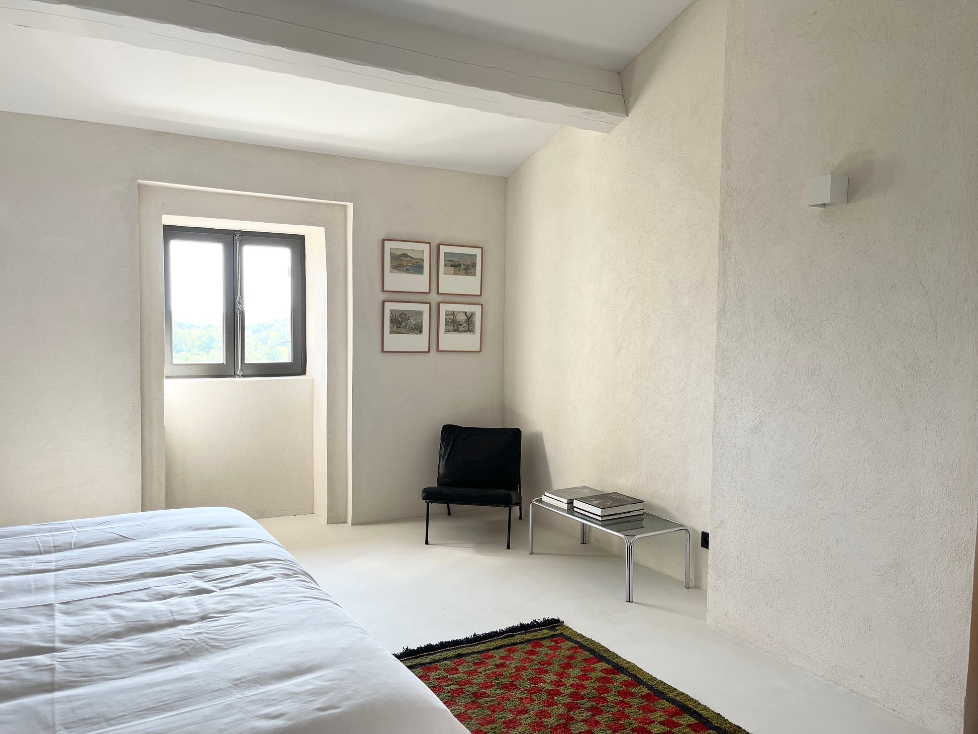 Sa décoration sobre baignée de teintes douces et d'objets chinés avec soin, donne à cette suite un esprit calme pour profiter de l'atmosphère des lieux et de la région.