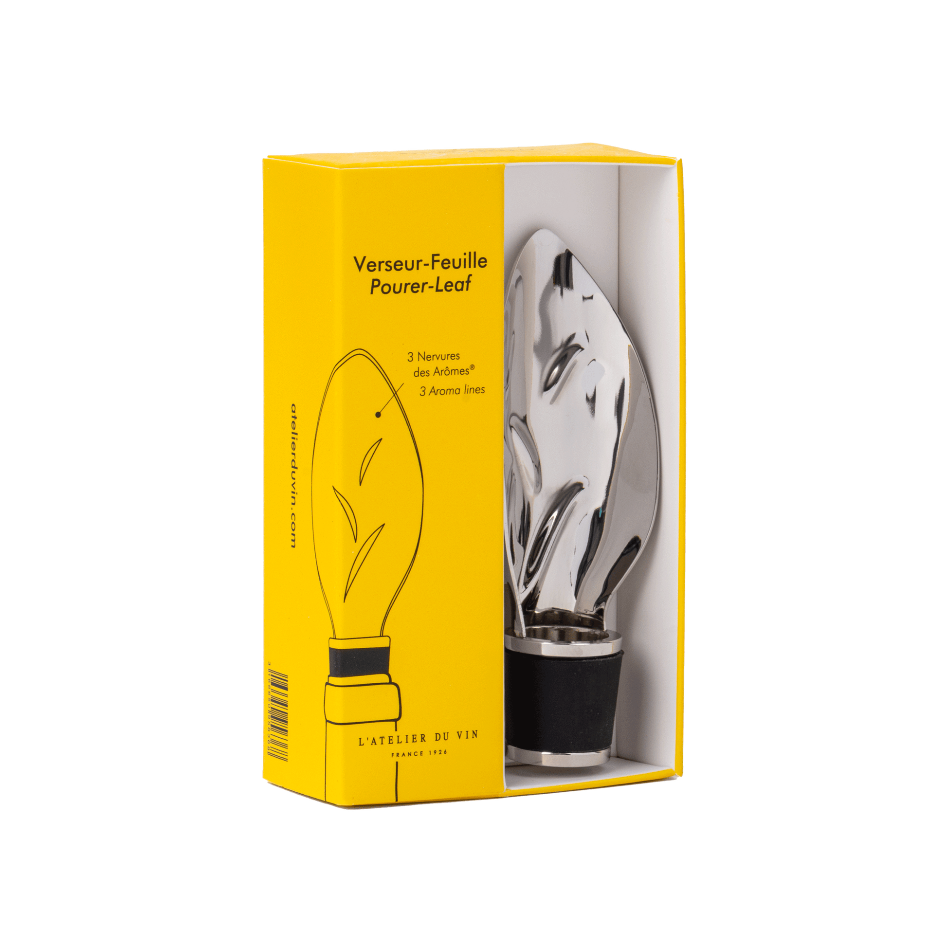Le Verseur-feuille est le premier verseur ouvert qui oxygène le vin dès son écoulement hors du goulot de la bouteille.